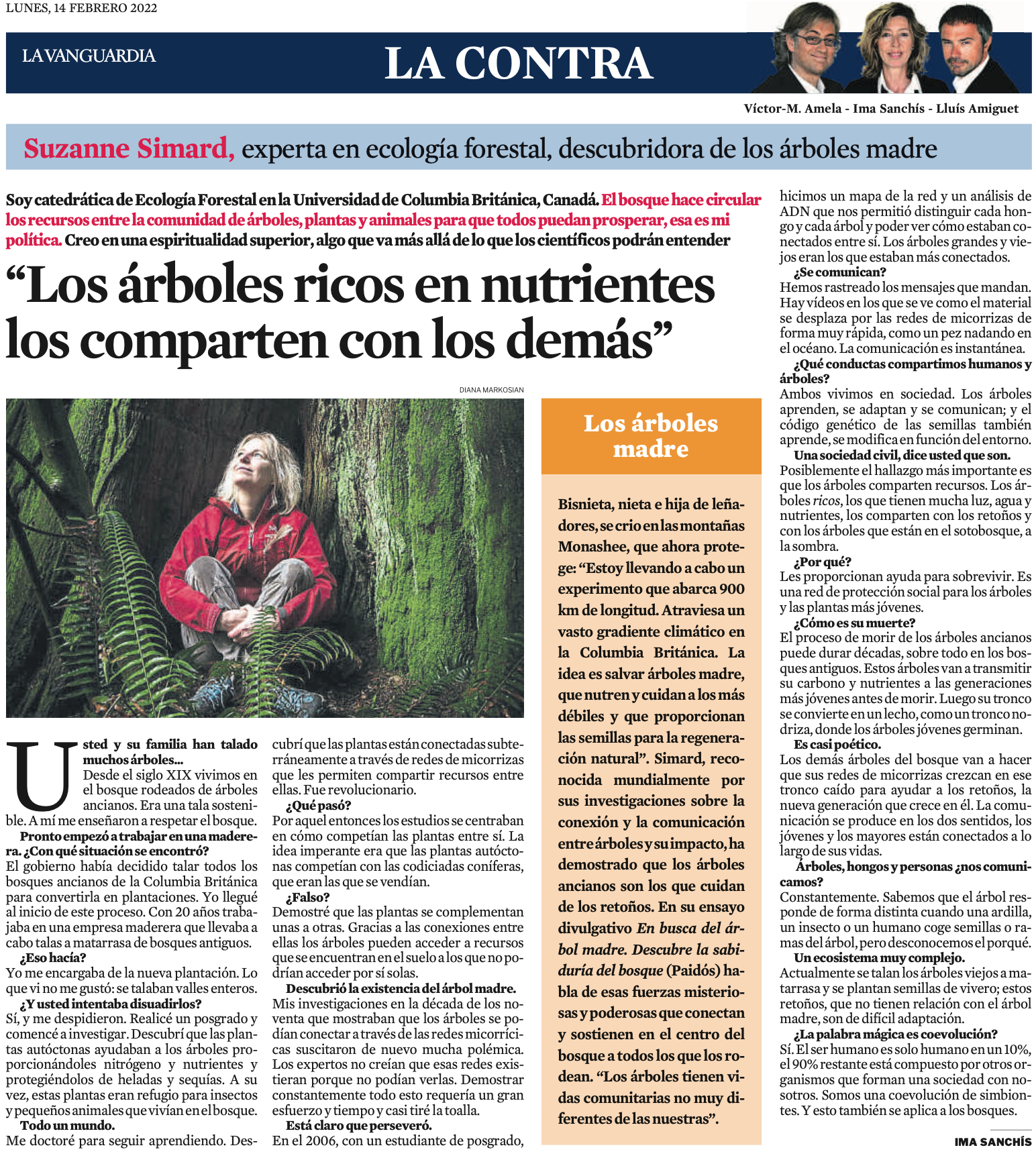 Suzanne Simard, experta en ecología forestal, descubridora de los árboles madre. Soy catedrática de Ecología Forestal en la Universidad de Columbia Británica, Canadá. El bosque hace circular los recursos entre la comunidad de árboles, plantas y animales para que todos puedan prosperar, esa es mi política. Creo en una espiritualidad […]